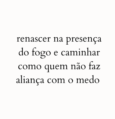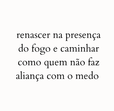 Coração grandioso, apenas siga sem medo o caminho que honra a força do fogo. Despeça-se agora de todas as lutas, a alma tem sede do novo. Friccione suas placas tectônicas para que o magma acenda na forma de um clarão luminoso. Construa as suas próprias e poderosas rochas, desenha um mundo que te caiba radioso. Do caos à cura, é tempo de uma nova estrutura. A vida quer te dar um abraço amoroso.